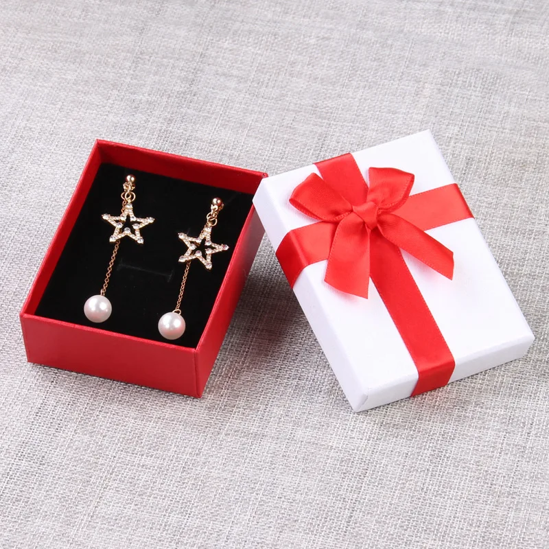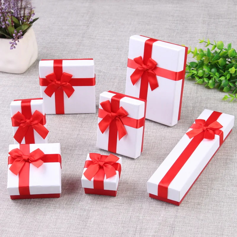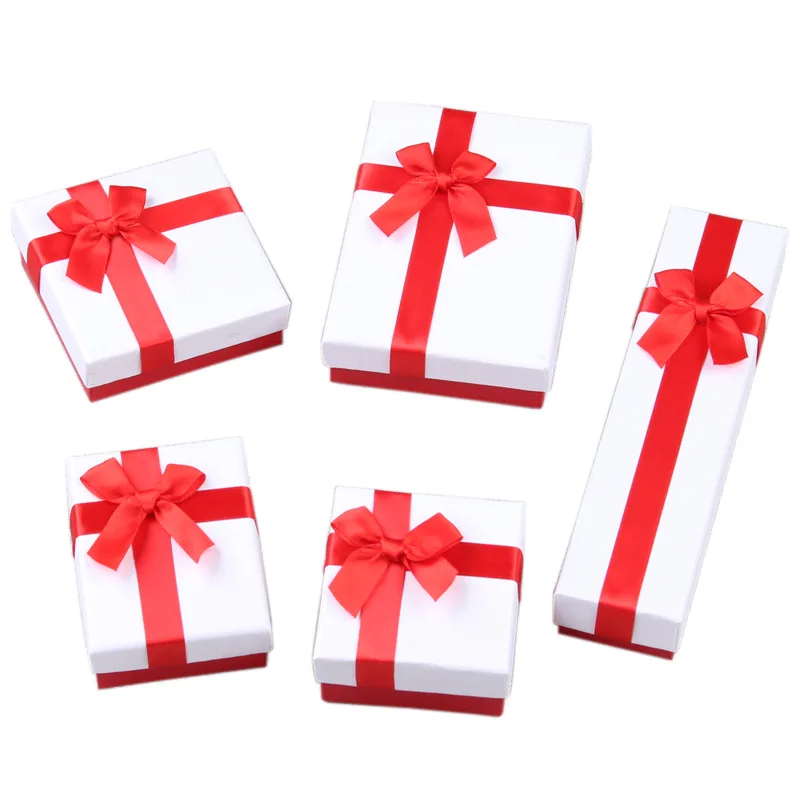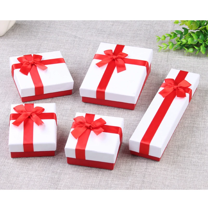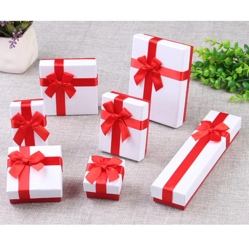 24pcs/Lot Red Silk Jewelry Ring Earrings Necklace Organizer Box with Red Bowknot Wedding Traval Business Portable Boxes