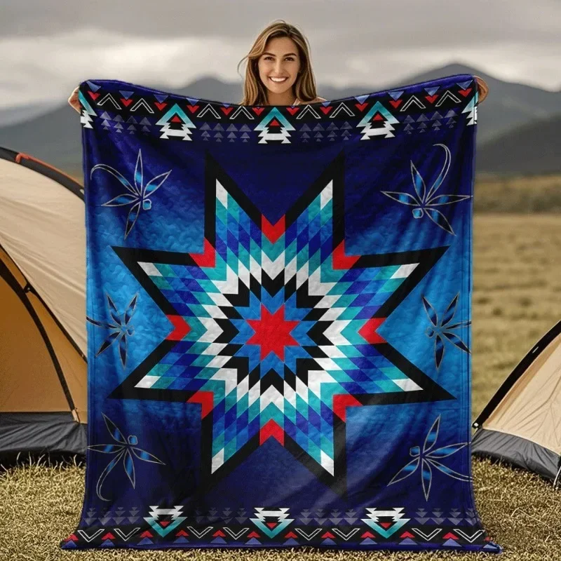 Native American Style Quilted Flannel Blanket AllSeason Southwestern Tribal Bedspread with Star Motifs in Turquoise