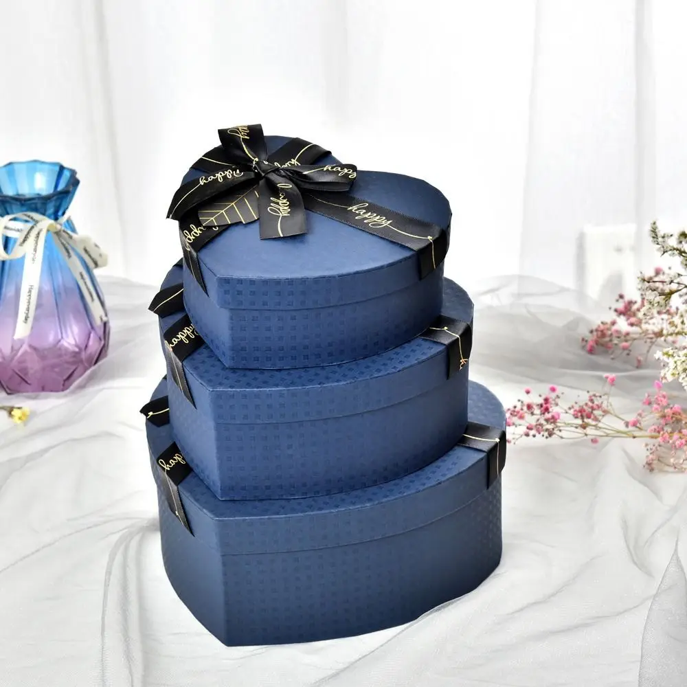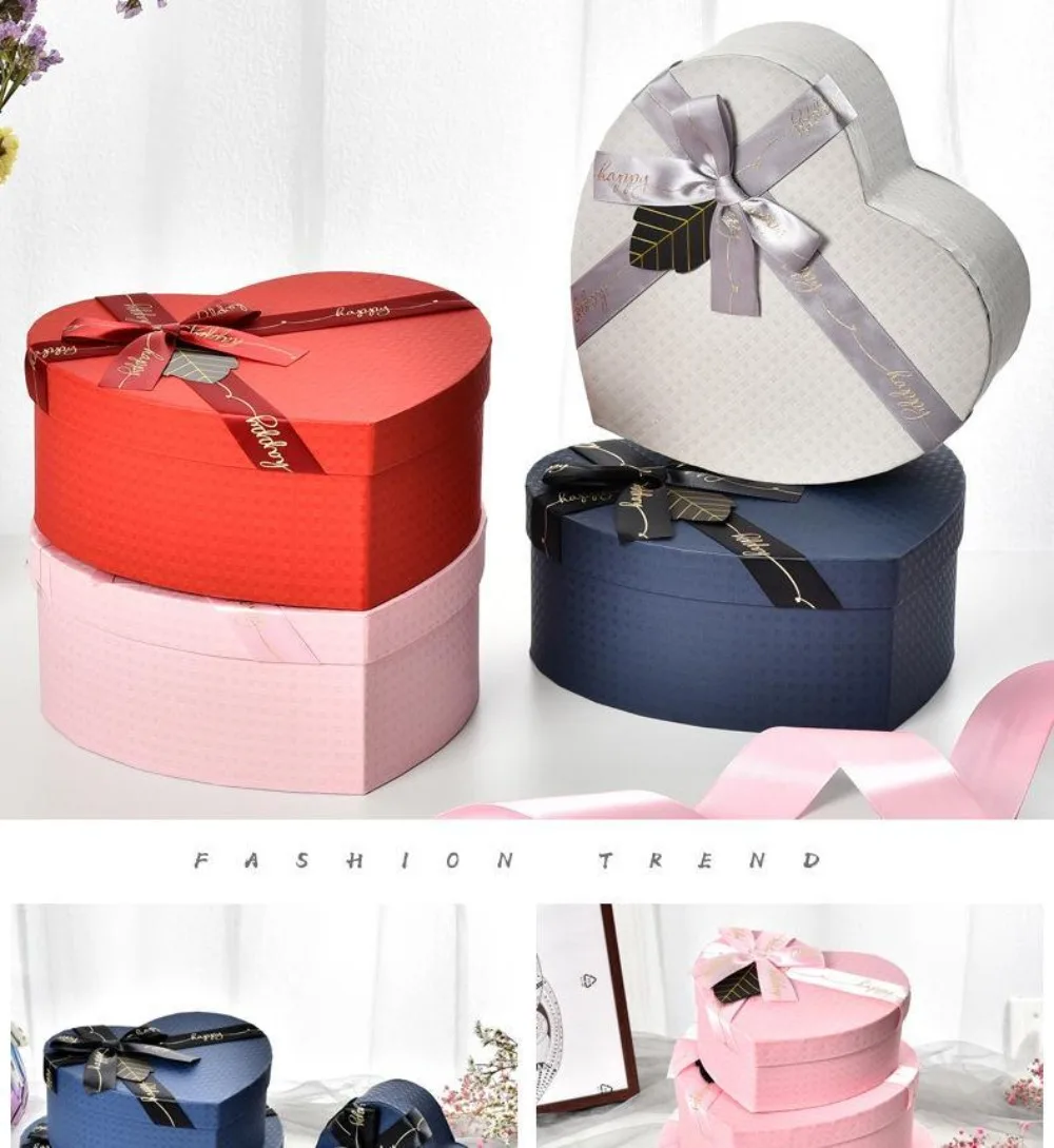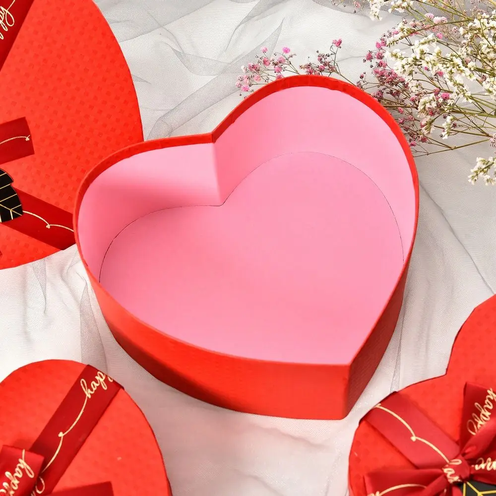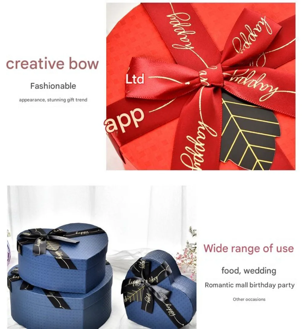 New Bowknot Silk Ribbon Gift Box Red Heart-shaped Present Boxes with Cover Packaging Paper Box Valentine's Day