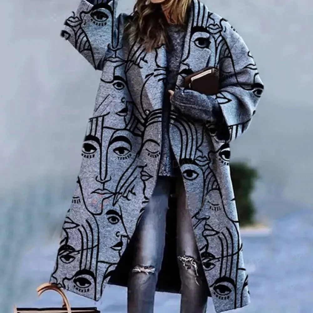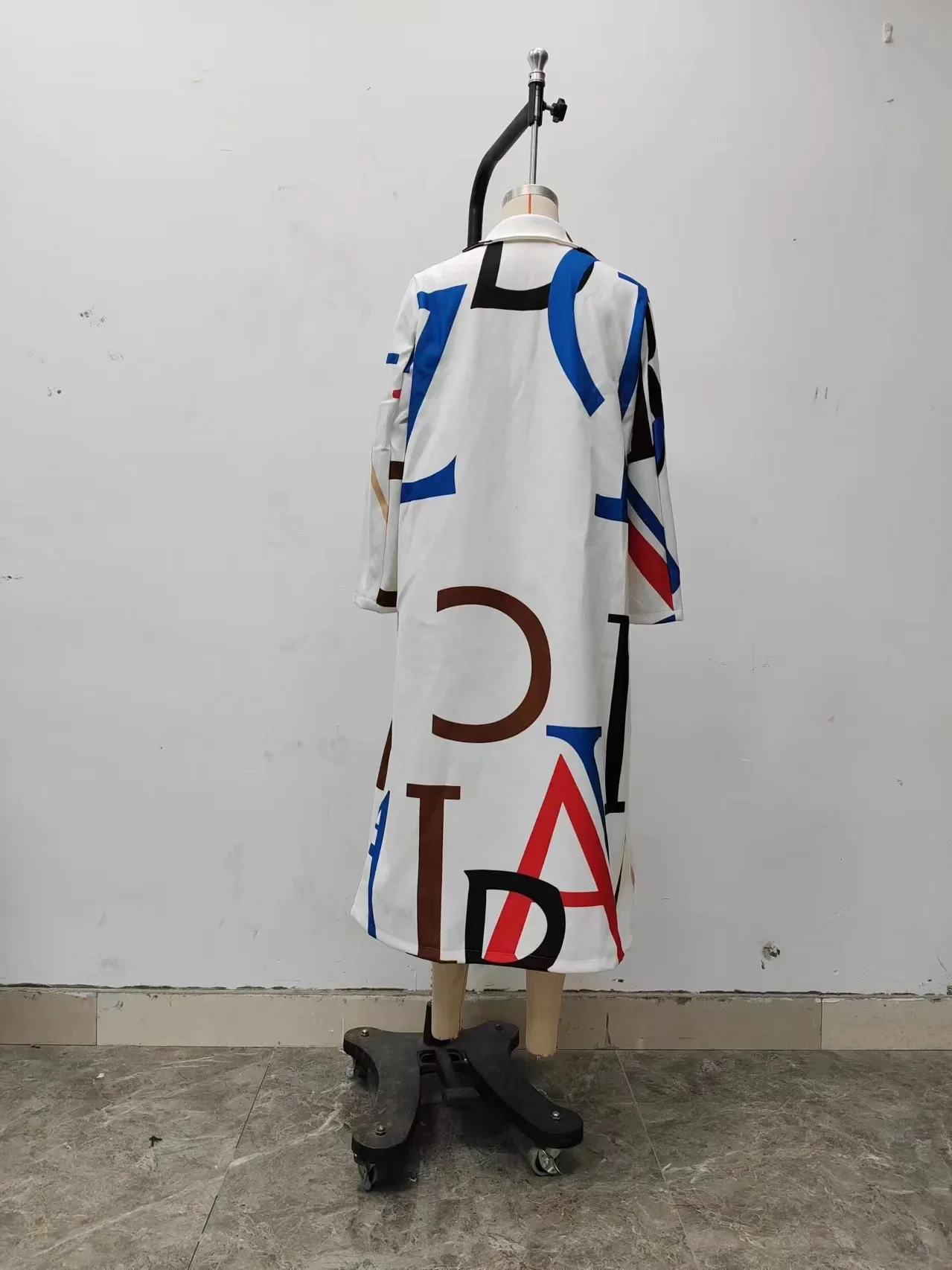 Plus Size 2025 New Women's Long Sleeve Multi-color Printing Overcoat Lapel Jacket Amazon Style Cross-border Trade Autumn Clot...