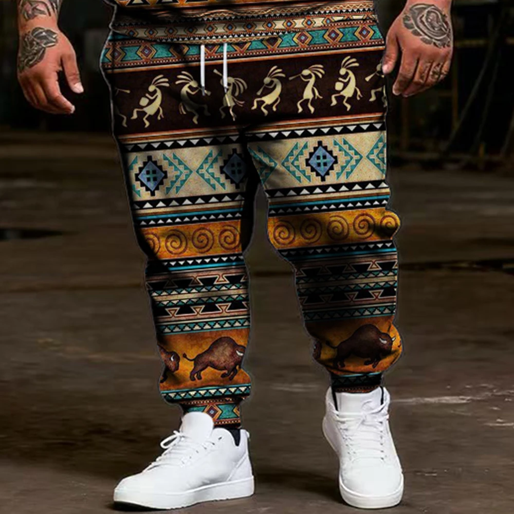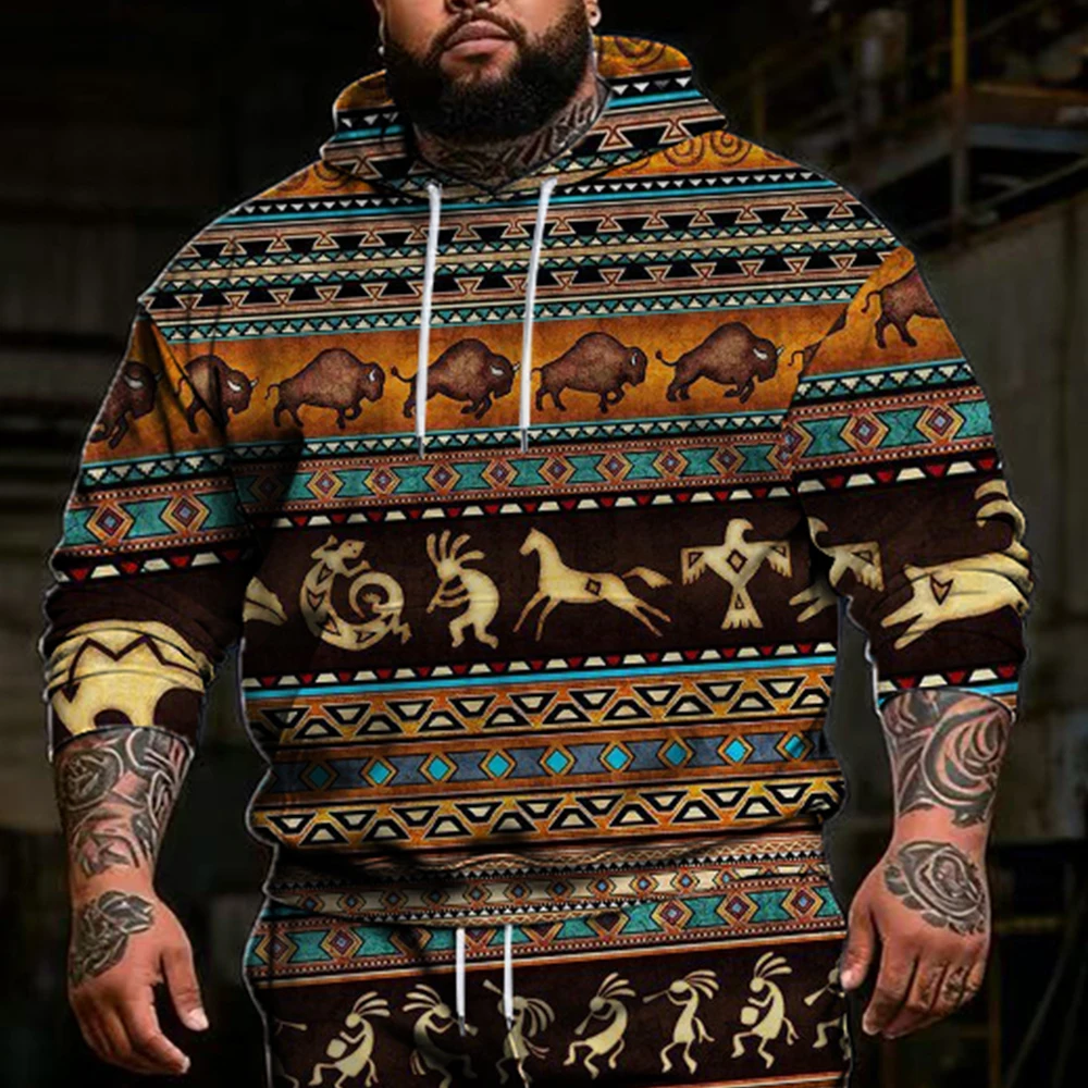 S-9xl plus size Big & Tall Men's Hoodie Set: Ethnic, Plaid Elements - 2-Piece Wear, Breathable Material, Stylish Designs