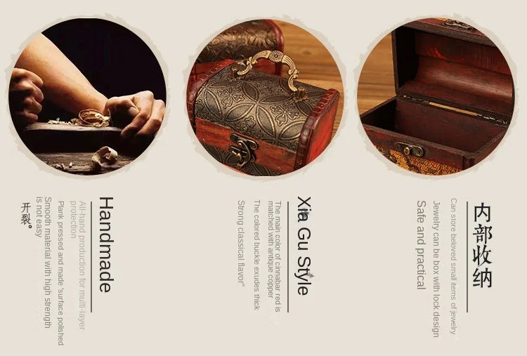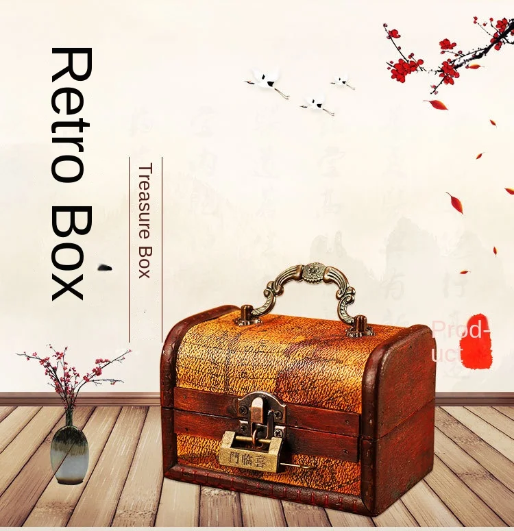 Wooden crystal packaging box Hot-selling antique retro wooden box Green stone Yuan Datou jewelry storage box